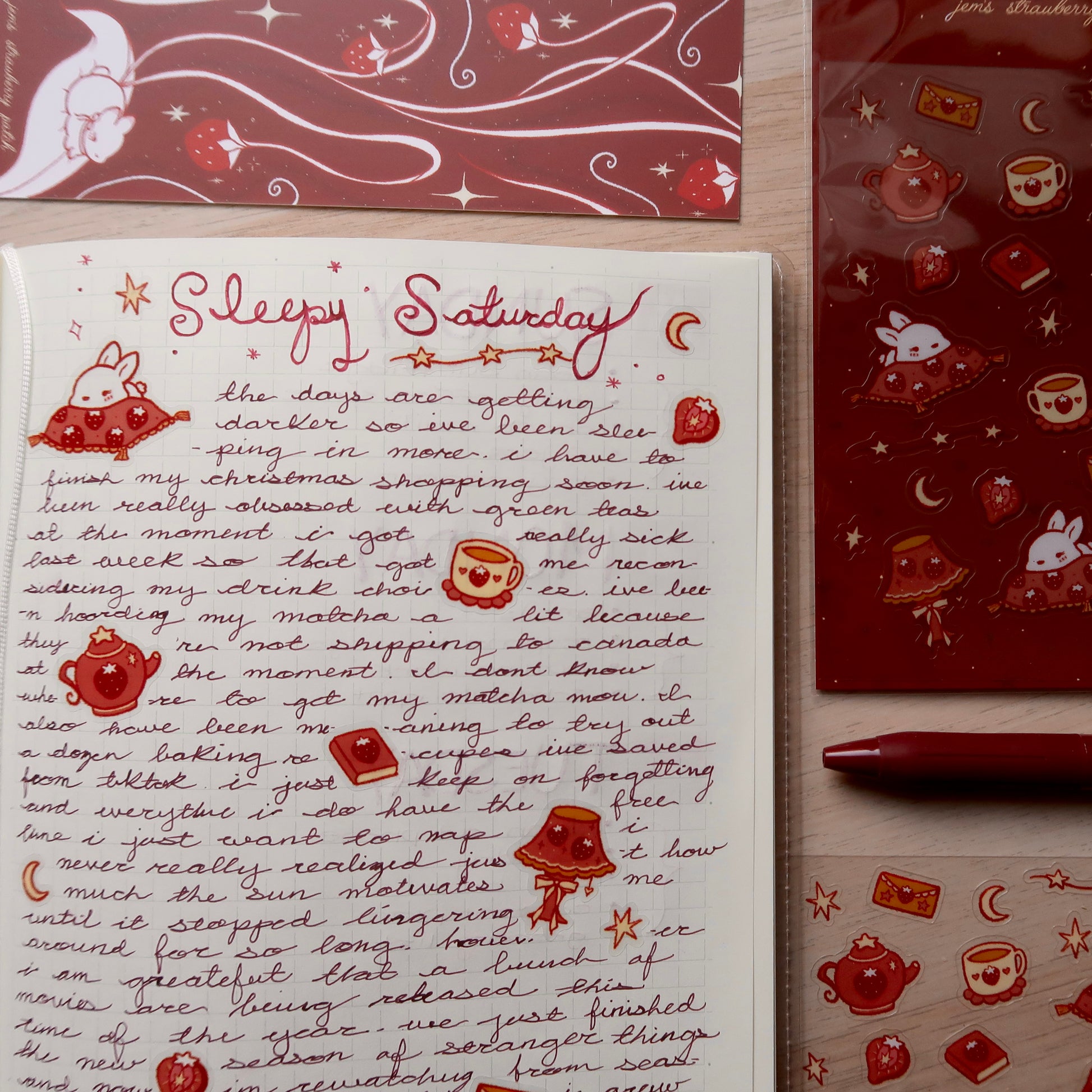 sleepy strawberry sticker sheet